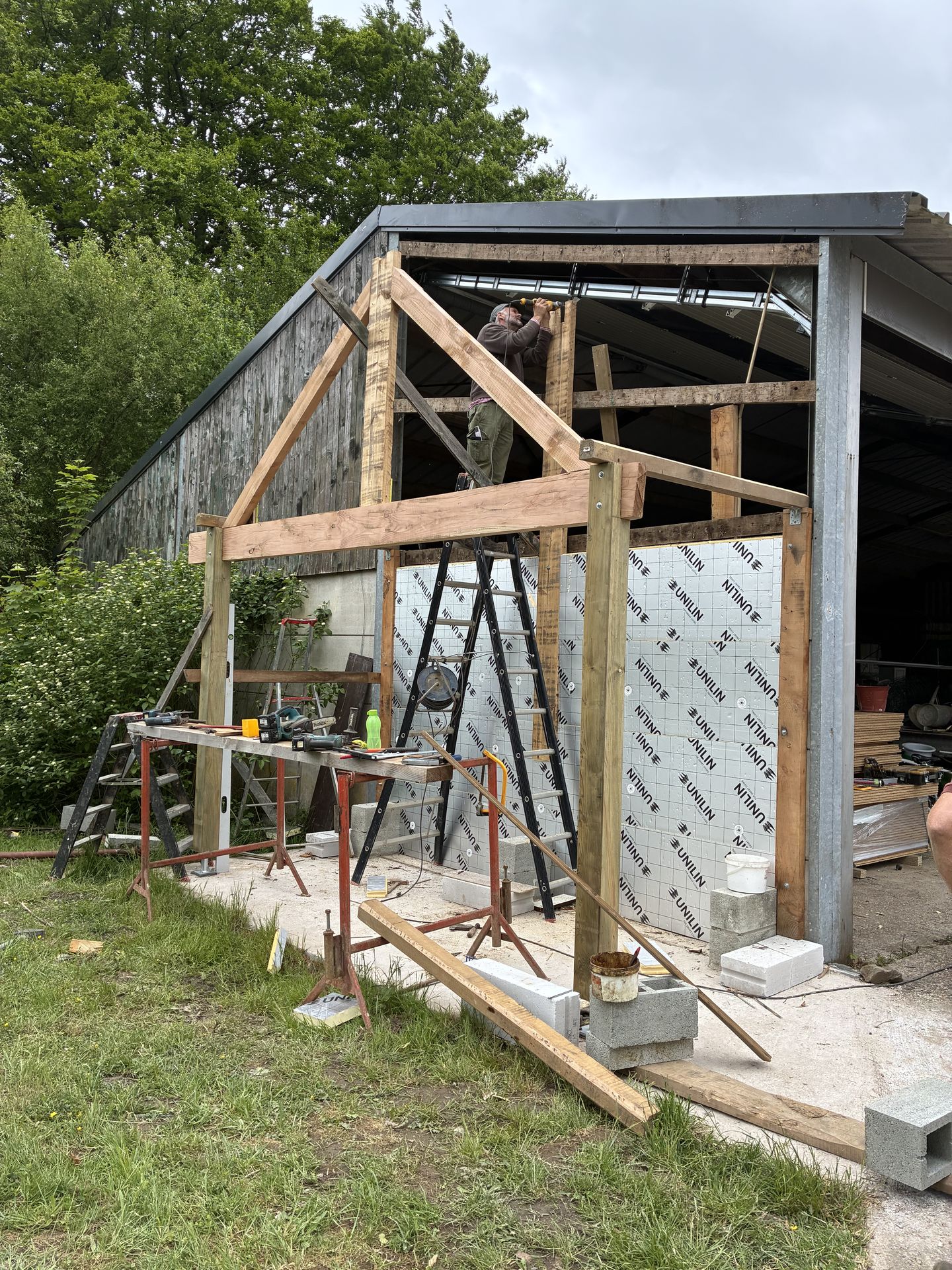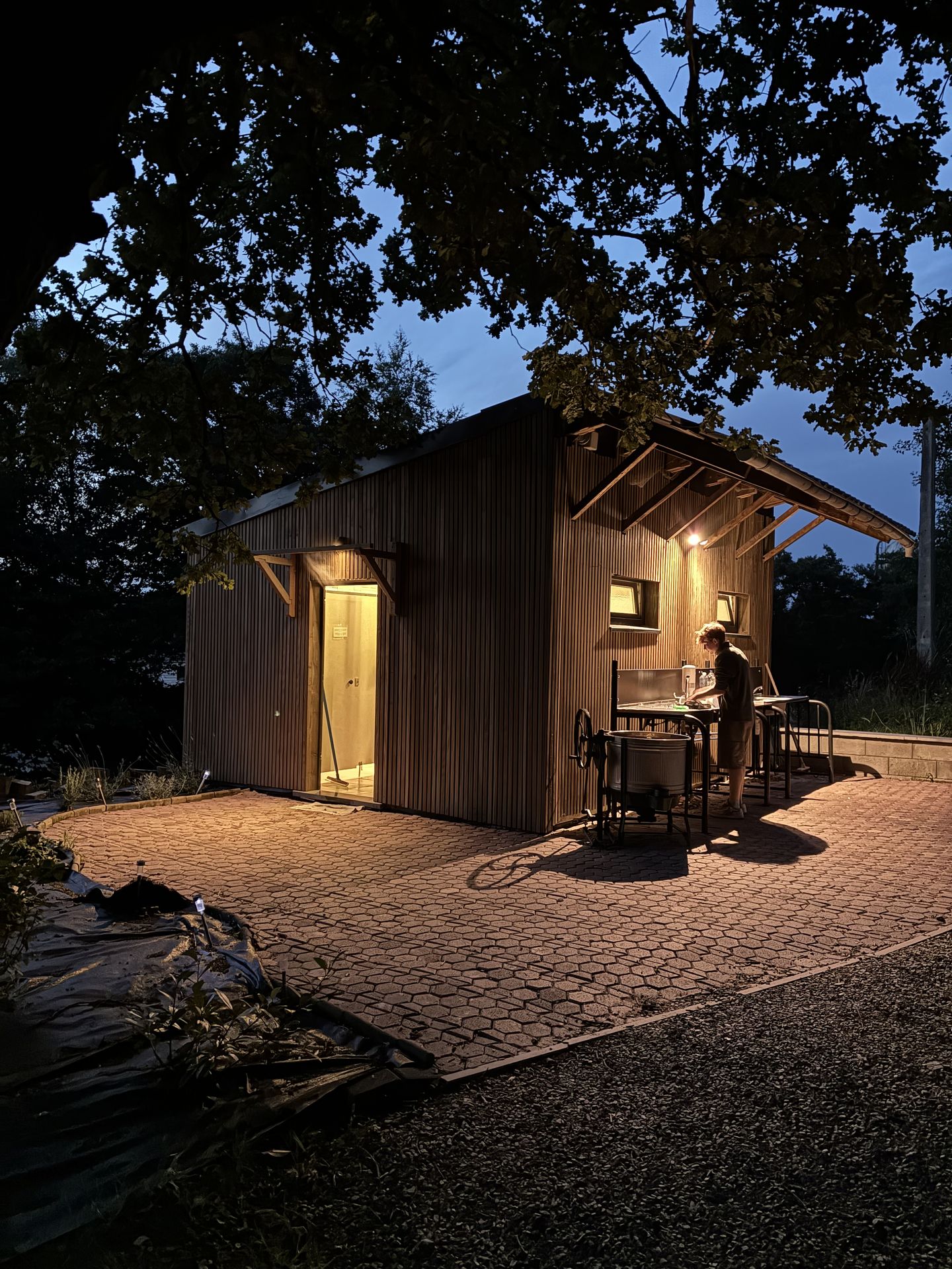 Pour ceux qui viennent depuis deux - trois ans, je suis heureuse qu’ils remarquent les changements d’année en année. L’entièreté des travaux sont réalisés par mon père qui est le chef de chantier, par mon ami Erik - instructeur et coach, puis par mon mari quand il est disponible et moi - tous deux « apprentis ouvriers ».